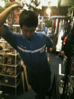 ちょうどDAYTONA ☆:*・∵さんとメールしてる所に、田中がやって来て素振りを始めたのでハマッたという事と素振りの写真を送った。