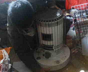 石油ストーブを逆さにして取り出そうとしてるのである。