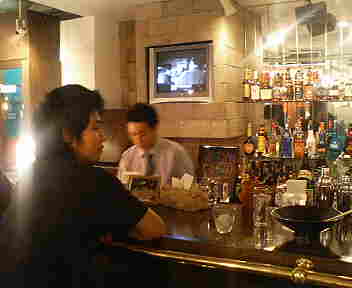 お洒落なバーでくつろいでいるように見えるが、リニューアルしたマンハッタンクラブの中である。