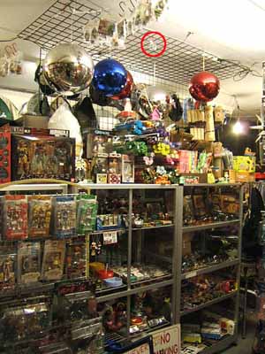 出張前には何もなかった天井にも商品がぶら下げてあった。
