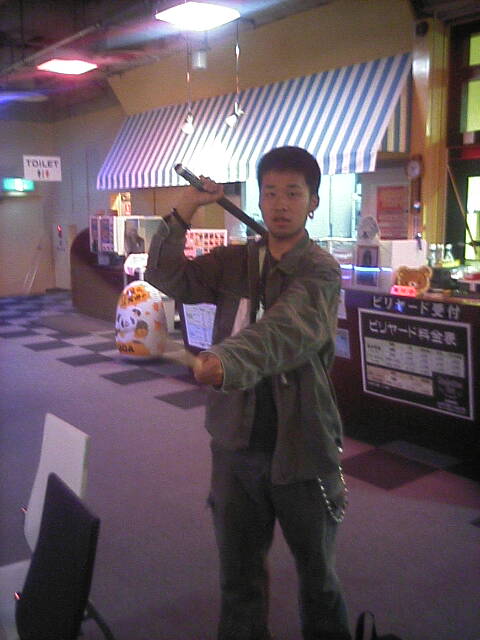 Azoneさんからビリヤードのキュー(打つ時の棒)をいただいた田中は話し出した。