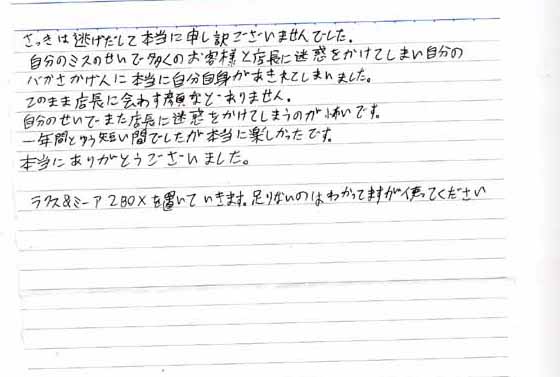『何をしたんだかわからないですけど、店長を怒らせるような事をして本当にすみません!』