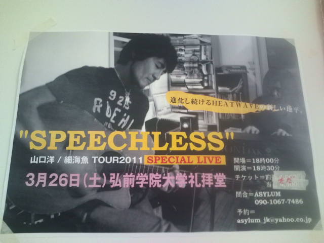 弘前学院大でヒートウェーブの山口洋さんと細海魚さんのチャリティーライブ。