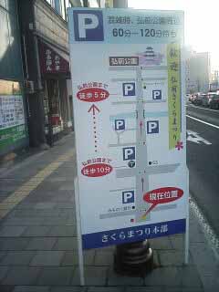 まだ始まっていませんが弘前公園の近くの駐車場は60〜120分待ちだそうです。