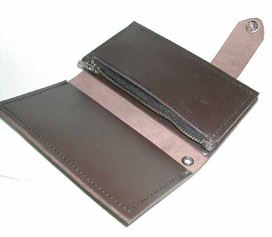 ファスナーのスライダーがウォレットチェーンの金具が当たりそうなので、ハトメは逆方向に付けました。