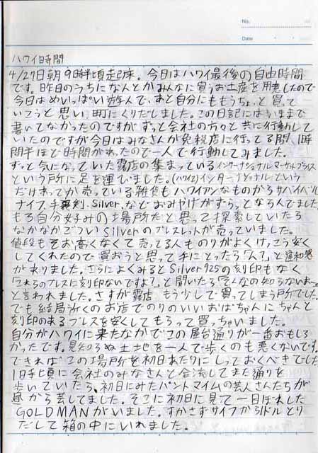 とにかくハワイまで行って、こんなに素晴らしい日記を書いてくれるなんて最高のお土産です。