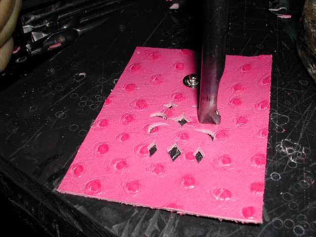 『カワイイー』と言われる部分が型抜きの部分なんですが、シェイプパンチという穴を開ける道具を使って作っています。