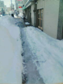 店の前の雪片付けが終わっていないため、前の人の通った後を通るための順番待ちであった。