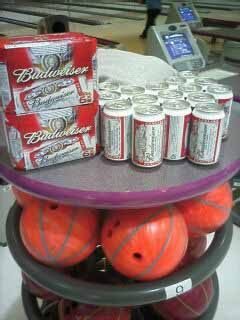 ゲーム中にチャンスがあって、同じレーンに入った人が同一フレームに全員ストライクorスペアを取ると、バドワイザーがもらえるという企画である。