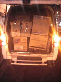 とりあえず積めるだけ積んだし、夜になってから雨も降って来たので帰る事にした。