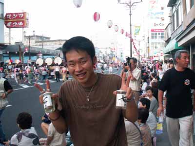 ねぷた駅前運行の初日。田中はパシリの仕事以外の時はずっーとご両親と一緒にいた。