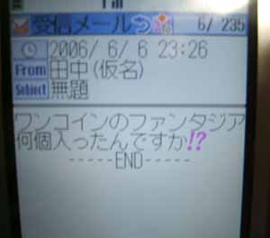 自宅でくつろいでいると田中からメールが届いた。