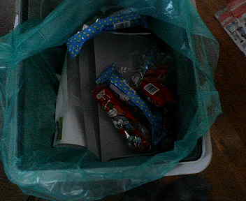 2階のゴミ箱ものぞいてみた。案の定うまい棒の空き袋が入っている。