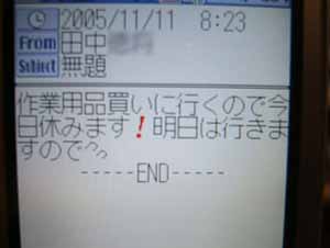 バイトがこんなメールをよこしたら「もう来なくていい」と返信すると思う。と言うか、すでに田中には数えきれないくらい「もう来なくていい!」と言っている(苦笑)
