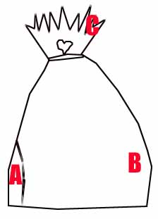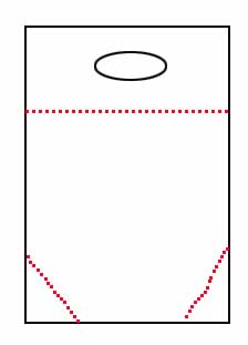 あまりにもわかりにくいと思うので、まず元々のベースを説明しよう。ベースは店で商品を買った時に入れて渡す袋である。絵の赤い点線の部分をカットする所から始まるらしい。