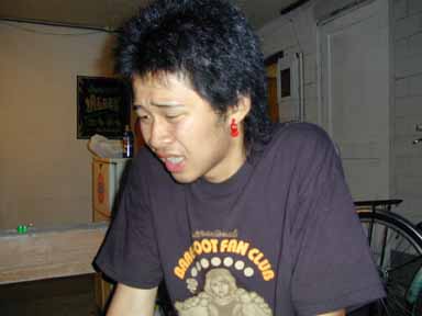 この写真はキムチ入りヤキソバもしくは苦い炭酸飲料を飲んだ後の田中(仮名)です。